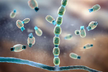 Microscopic fungi Scopulariopsis brevicaulis, 3D illustration. Fungus that infects nails, causes subcutaneous and invasive infections, endocarditis, sinusitis, disseminated infection