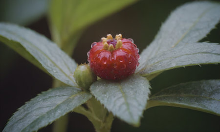 Generative AI : Taxus Baccata or European yew dark green foliage and bright red seed cones arin