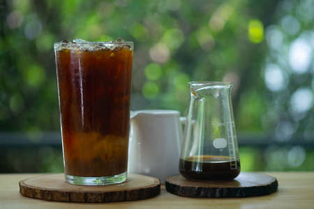 Iced cold brew espresso served in a glass. Concept of cool fresh drink for summer.