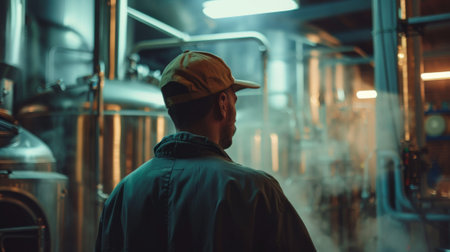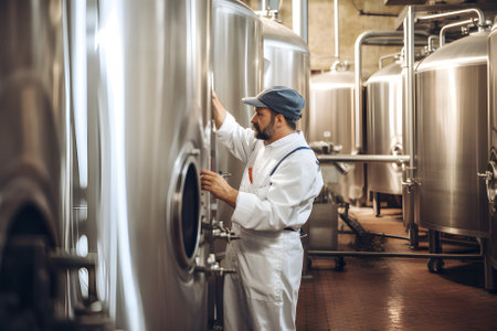 Brewer overseeing fermentation process in brewery, ensuring quality and taste of craft beer