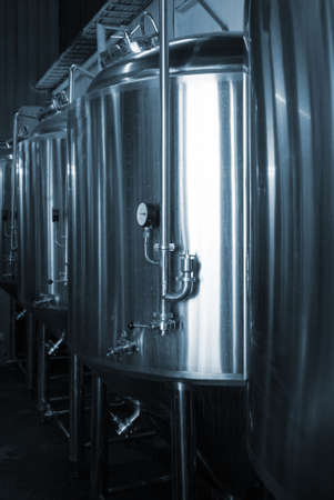 brewery, a beer maturation shop, a lot of steel tanks indoors