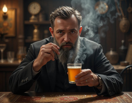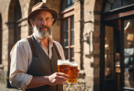 Man with beer. Beer in the UK. Beer Types and Styles. Germany Bavaria. Bearded man drinking lager beer.