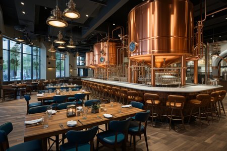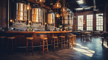 The lively atmosphere of the empty brewery pub. Generative AI