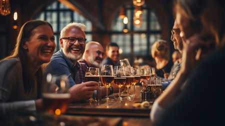 A group of people drinking beer at the pub's brewery restaurant AI generated