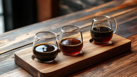A coffee flight featuring three distinct types of coffee served in glass cups