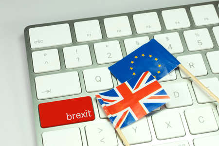 brexit and eu flag on a pc keyboard