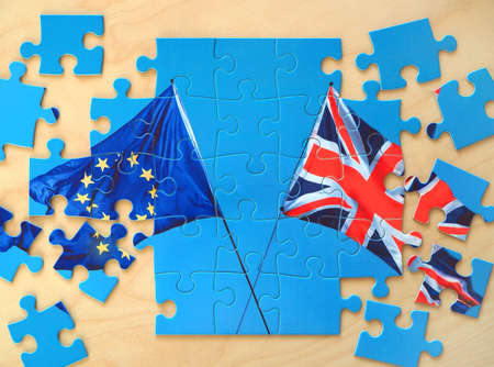 Puzzle with Great Britain and European Union flags. Brexit concept