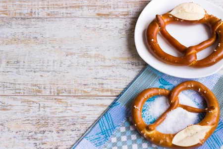National Bavarian pretzels on a wooden table