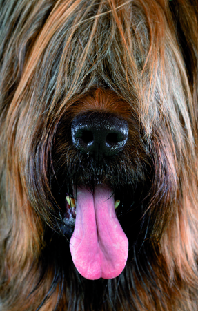 Briard sheepdog face with the tongue out