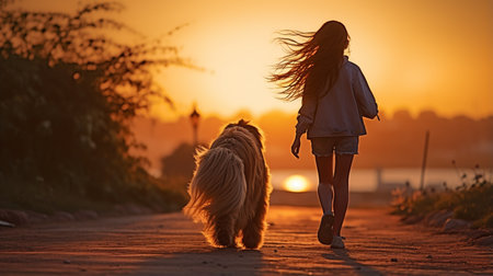 Human and a dog. Teengirl and her friend staffer dog on the field background. sunset with her lovely dog. Lifestyle