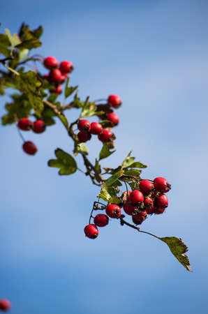 Sprig of red hawthorn berries