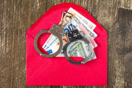 Concept for corruption and bribing fraud finance with Bundle of dollar