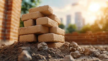 AI Generated. Stacked rustic bricks creating a sturdy foundation for construction