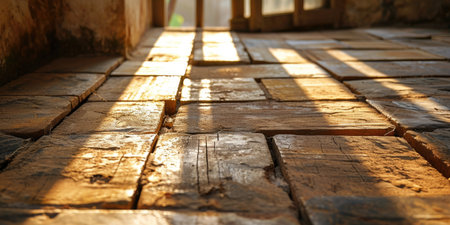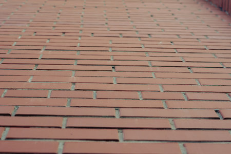 An artistic perspective view of a spacious brick floor, emphasizing its texture and isolation. Ideal for backgrounds, architectural designs, and minimalist themes.