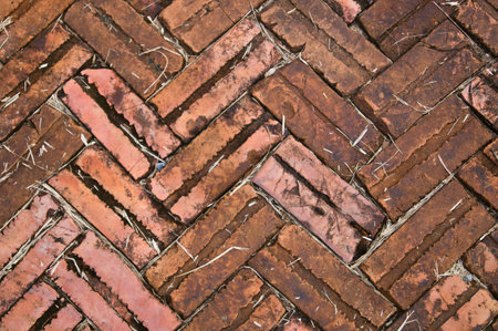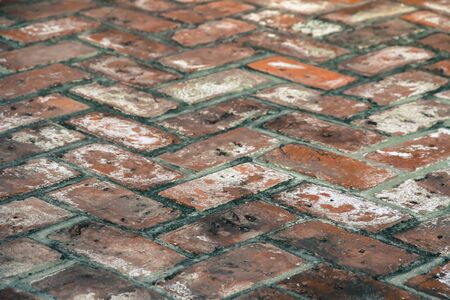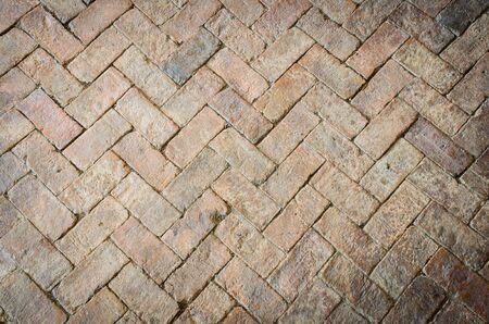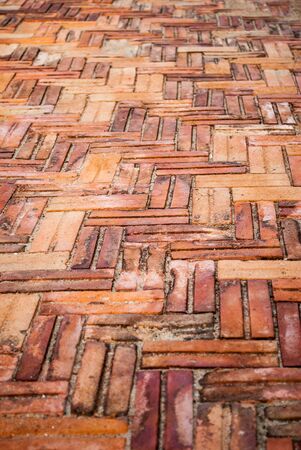 Brick floor pattern background, old red bric block arrangement