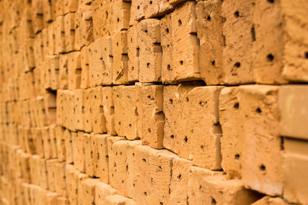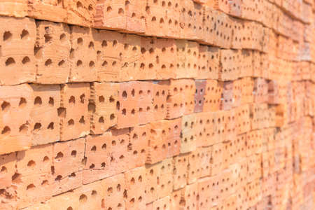 pattern of red bricks stack, abstract background, selective focus
