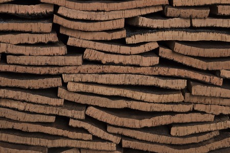 View of a bunch of cork planks stacked.