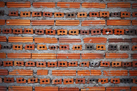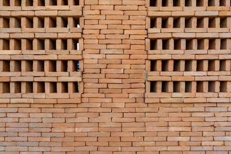 Red brick overlap.Red brick used in the construction of the wall.Red brick made of clay fire
