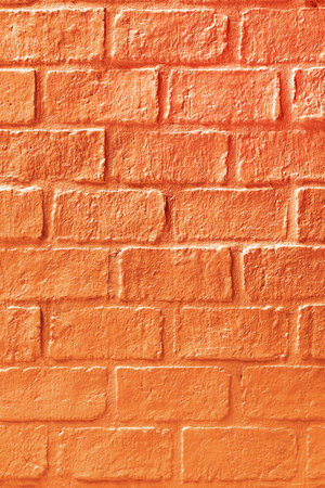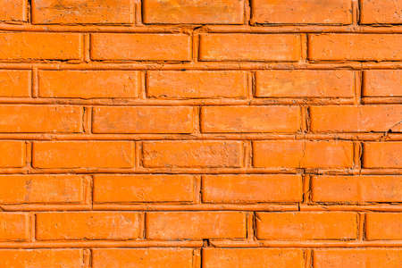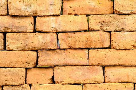 The background of the brick wall in light orange tone . Old red brick wall vintage texture. Grunge stonewall background for text or image.Brick wall of Orange yellow.