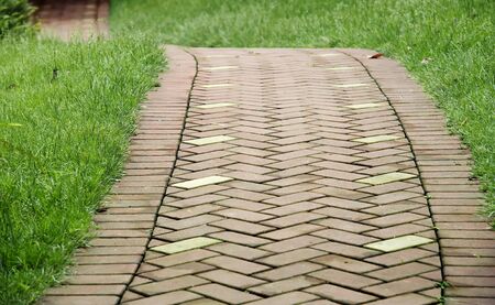 Bricks pathway in the garden. Thailand. Mar 2015