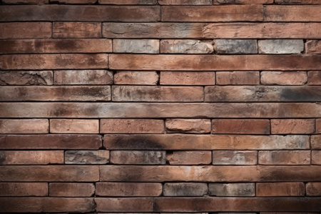 A full-frame image of a red brick wall, showcasing the varied textures and patterns, ideal for background or texture use. AI generation