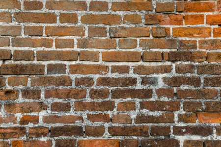 Old red brick wall without plaster. Joint by cement. Best for wallpaper