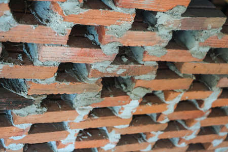 Brickwork of brick, folded in a certain way and fixed with mortar. industrial brick placing brick on cement in the construction of external walls, industry details