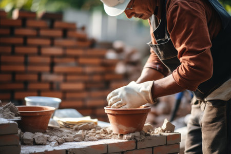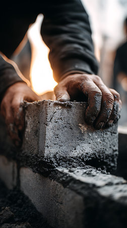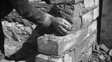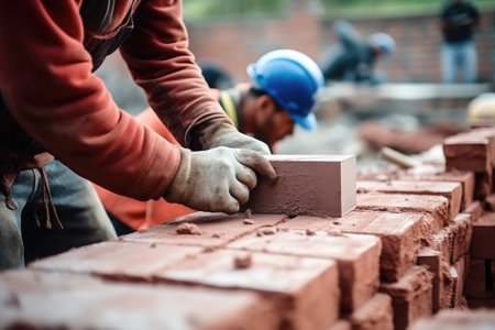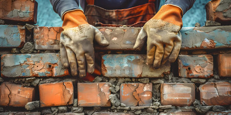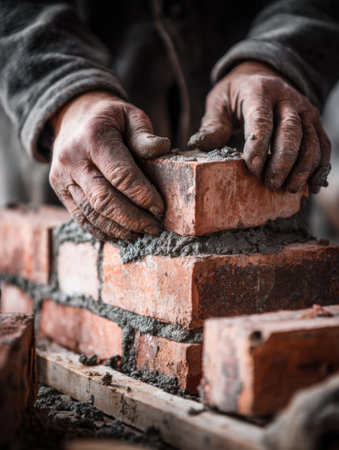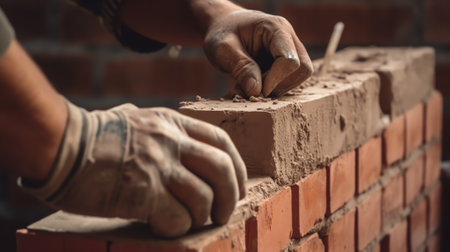 Closeup of a bricklayers skilled hands meticulously placing bricks with precision and artistry