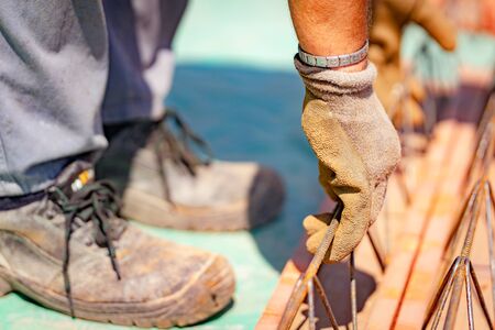 Gloves hands laying brick cement construction worker masonry dirty industrial