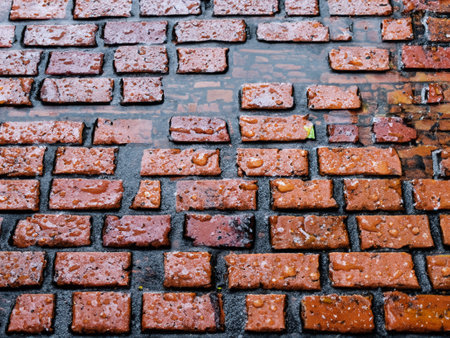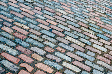 red bricks in the street in rainy day.