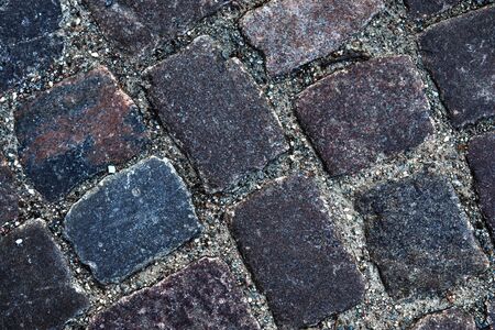 Detailed close up view on cobblestone street textures in high resolution