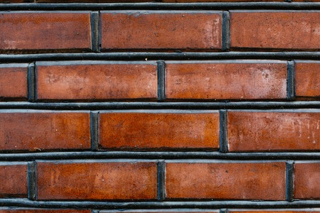 Close up of red aged brick wall as abstract background texture with old and vintage style pattern.