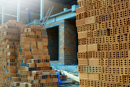 Red bricks for building in construction site.