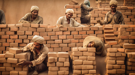 Unidentified indian people working in a brick factory.
