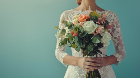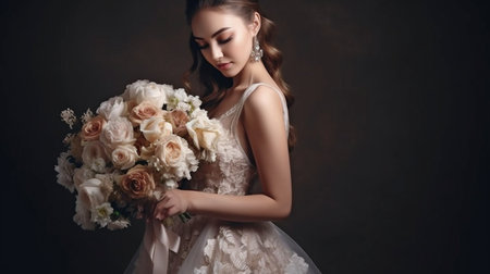 woman holding a wedding bouquet flowers, ai