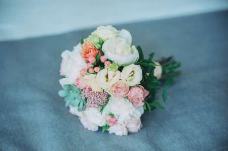 Beautiful bouquet of the bride in different color tones