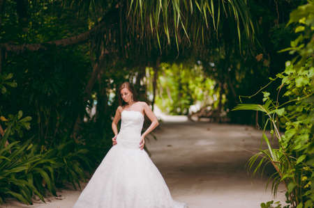 The beautiful bride on an island in palms