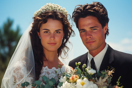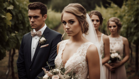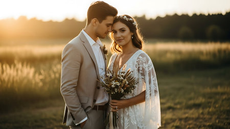 A newlywed couple celebrates love in nature generated by artificial intelligence generated by artificial intelligence