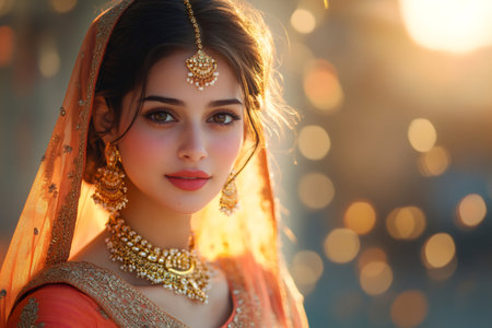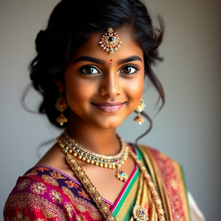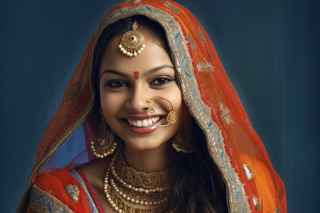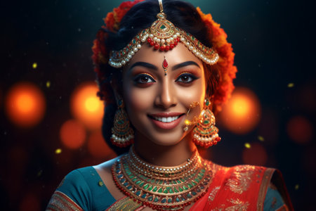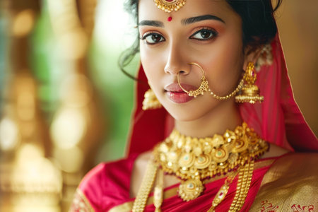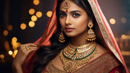 indian woman wearing traditional clothes and jewellery, closeup portrait