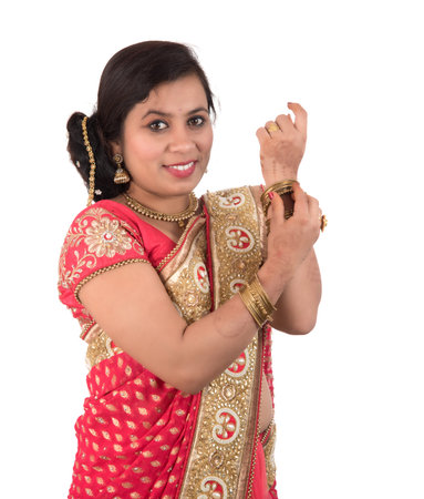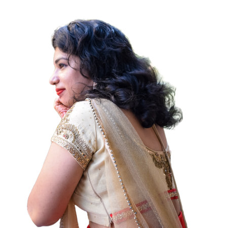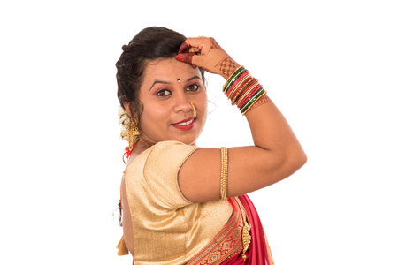 Close up of Beautiful Indian Traditional young girl in saree on white background