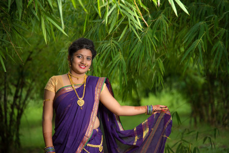 Indian Traditional Beautiful young girl in saree posing outdoors