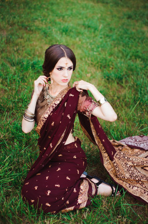 Pretty young woman posing in traditional Indian sari