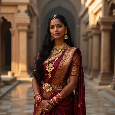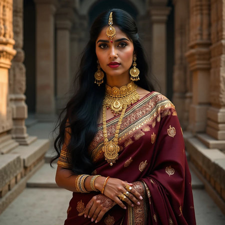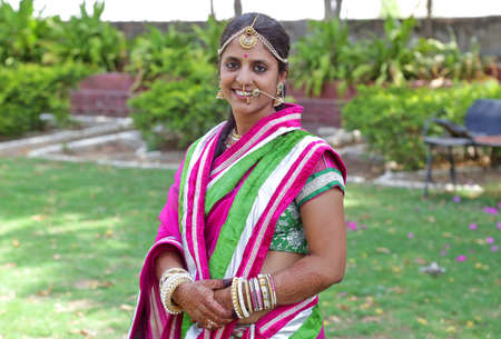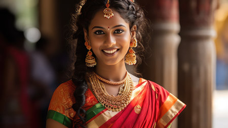 Beautiful indian young woman in traditional sari and jewellery