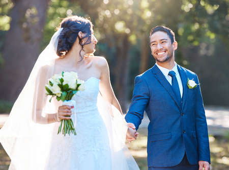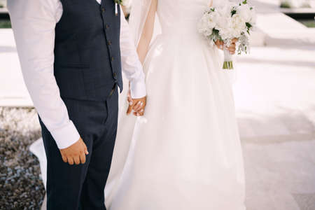 Wedding couple bride and groom holding hands