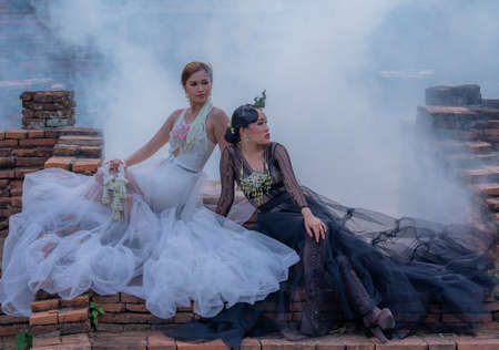 Thai women wearing traditional heritage costumes in Ayutthaya period