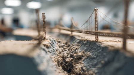 A person holding a miniature bridge in their hand, AI