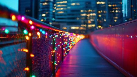 Colorful Christmas lights in urban architecture on a winter evening