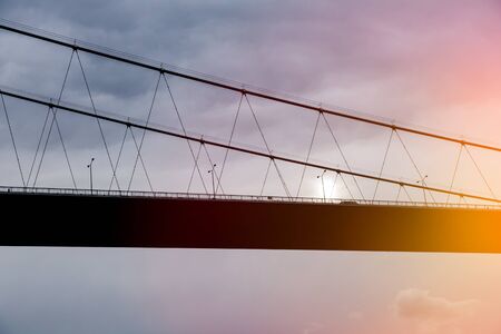 Large suspension bridge close-up design connecting the coast across the strait
