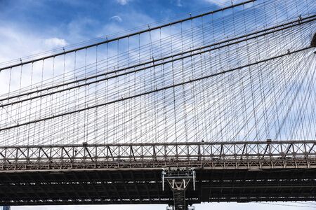 Cross section of the Brooklyn Bridge seen from East River in New York City, USA