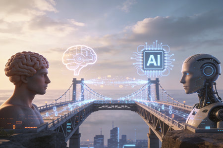A futuristic bridge with binary code elements symbolizing digital connectivity and data transfer